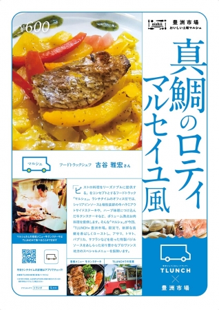 市集自1月12日起至3月30日的每个星期六上午8点至下午3点,每周都有不同的餐车轮替上场。这些餐车的主厨都是在东京都内各角落创造人气排队美食的料理人,直接在丰洲市场采购最新鲜食材,经过他们的巧手变化成各种市集餐车限定料理。