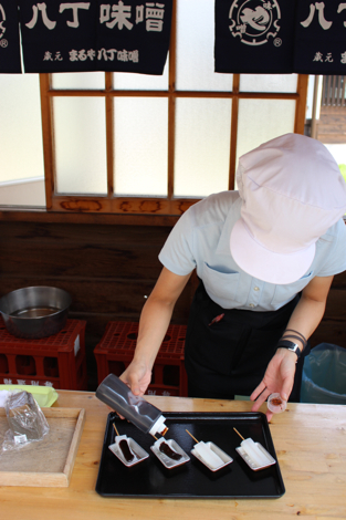 吃饱了,以为这样就结束了吗?那可不行。目前最流行的就是八丁味噌霜淇淋了。把味噌加近冰品,绝对不是只有喝过味噌汤的人能够想像的。就像是盐味焦糖的口感 体验一样,味噌霜淇淋在入口之际,立刻能感受到味噌的味道,但旋即口感就会转为甜味。先咸后甘的绝妙口感,完美融合,是味噌料理的完美收场。