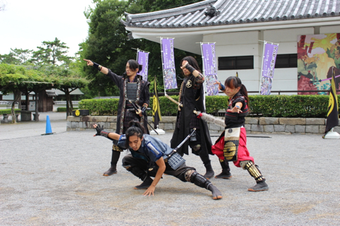 最后值得一提的是,为了吸引游客,每逢周末例假日,会在天守阁下定期定时举办「GREAT家康公『葵』武将队」的表演。身穿盔甲,装扮成战国武士的表演者,进行一天两场的战舞表演,也欢迎游客合影留念。